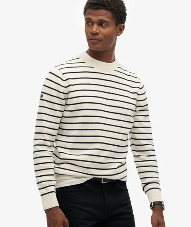 Relaxed fit - de klassieke pasvorm van Superdry. Niet te strak en niet te wijd. Gewoon goed. Kies je gebruikelijke maat. Ronde hals en geribbelde afwerkingen. Kenmerkend metalen label op de mouw. De gestreepte marinetrui The Merchant Store is een gemakkelijke manier om je dagelijkse look op te fleuren. Met een flatterende ontspannen pasvorm is dit lichte jersey breisel perfect voor het tussenseizoen voor elke gelegenheid.