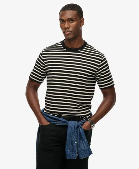 Relaxte pasvorm - de klassieke Superdry-pasvorm. Niet te nauwsluitend, niet te ruim, precies goed. Kies je gebruikelijke maat Ronde hals en korte mouwen Logolabel op mouwboord Het gestreepte T-shirt uit onze Merchant Store-collectie is de perfecte veelzijdige basic die bij je authentieke look past. Dit T-shirt is ideaal om onder een overshirt te dragen tijdens koeler weer of als statement piece in de zomer. De stof voelt zacht aan en het ontwerp is nonchalant stijlvol, strepen zullen nooit hun c