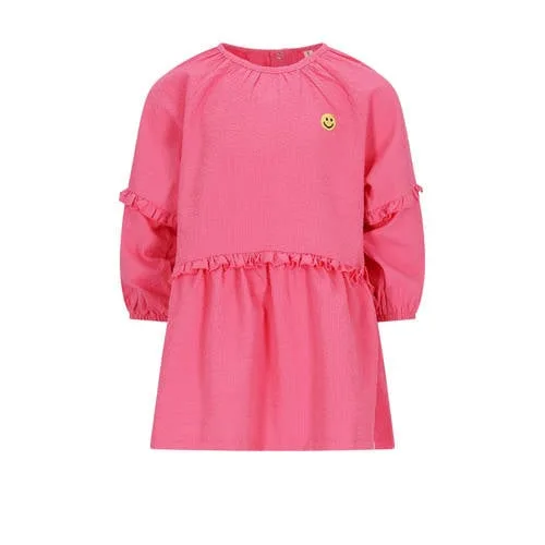 Deze jurk van The New Chapter heeft lange mouwen en een ronde hals. De korte jurk is gemaakt van 100% polyester. De knoopsluiting zit aan de voorkant en de ruches geven een speels effect.