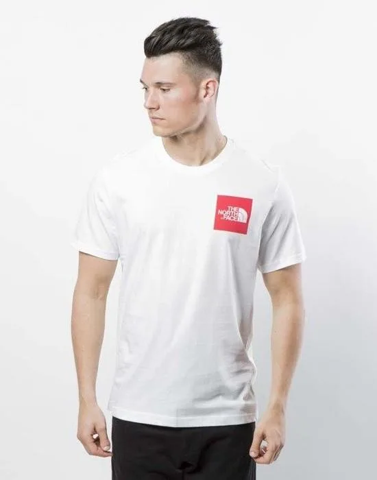 The North Face Heren Fine Short Sleeve T Shirt Wit/Rood Prijzen