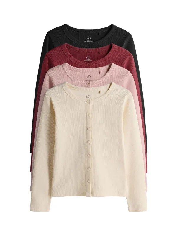 Design: Geribbeld gebreid, Ingelegde kraag; Type sluiting: Drukknoop; Materiaal: Jersey; Halstype: Ronde hals; Motief: Effen; Extra's: Met textuur; Pasvorm: Normale pasvorm; Aantal: 4 Pack; Armlengte: Lange mouw; Lengte: Normale lengte
