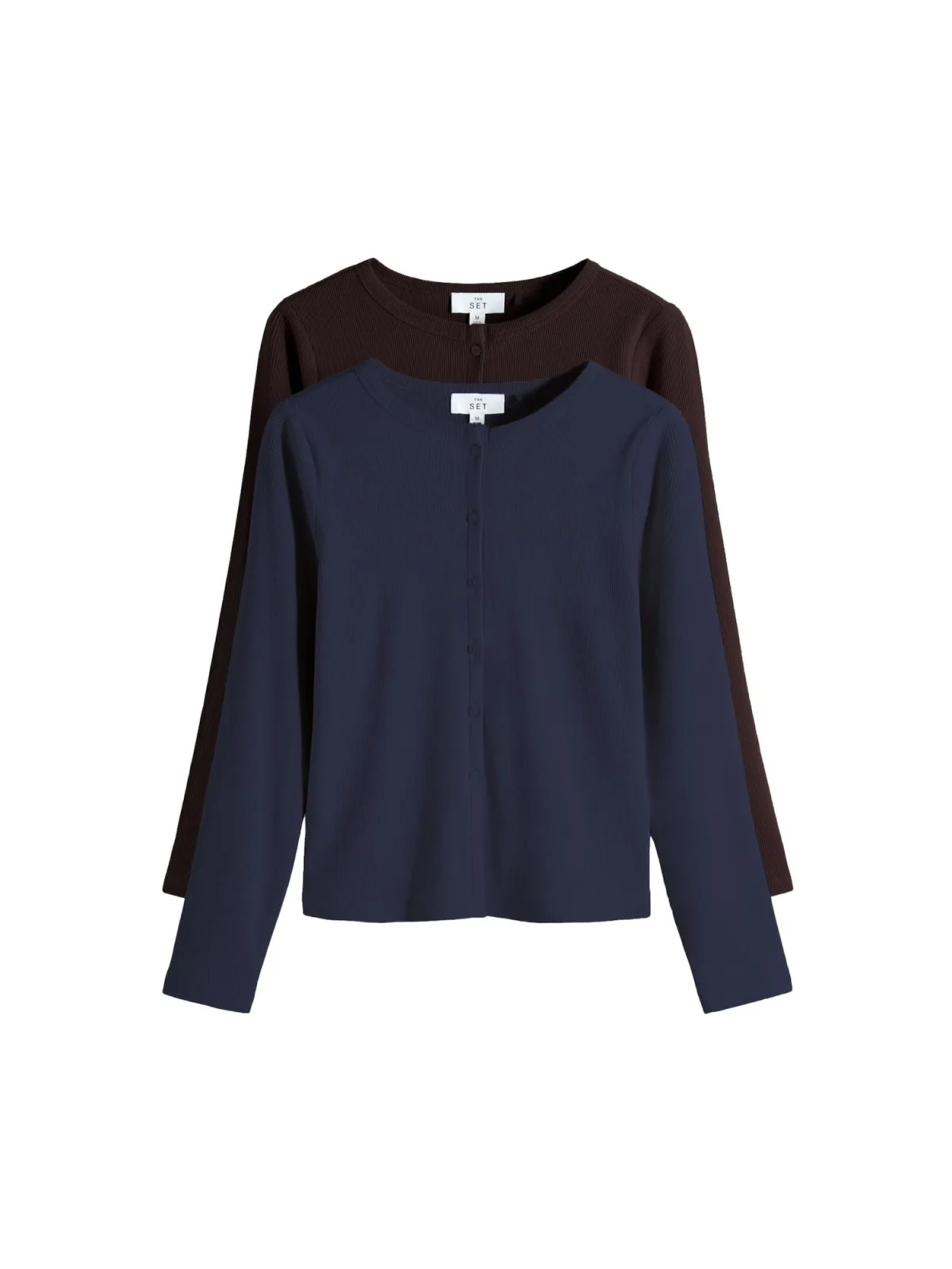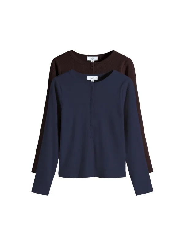 Design: Geribbeld gebreid; Type sluiting: Drukknoop; Materiaal: Jersey; Halstype: Ronde hals; Motief: Effen; Extra's: Met textuur; Pasvorm: Normale pasvorm; Aantal: 2 Pack; Armlengte: Lange mouw; Lengte: Normale lengte