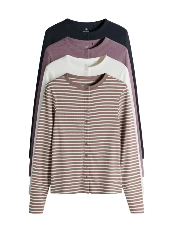 Design: Knop placket, Geribbeld gebreid; Type sluiting: Knoopsluiting; Materiaal: Knitwear; Halstype: Ronde hals; Extra's: Voelt zacht aan; Pasvorm: Normale pasvorm; Aantal: 4 Pack; Armlengte: Lange mouw; Lengte: Normale lengte