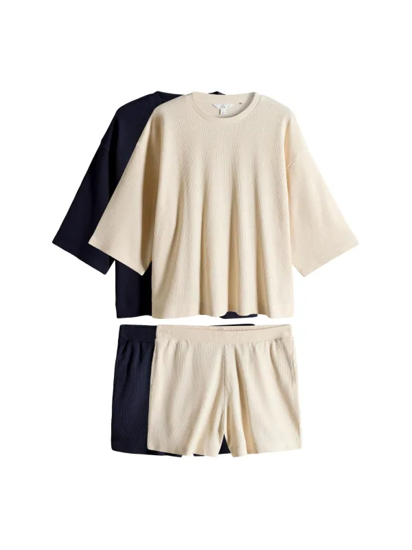 Design: Geribbelde kraag, Elastische taille/zoom; Materiaal: Katoen; Halstype: Ronde hals; Motief: Effen; Details: Gedrapeerd; Extra's: Op staal naden, Wafelstructuur; Lengte: Kort/mini; Pasvorm: Wijde pasvorm; Aantal: 2 Pack; Armlengte: Halve mouw