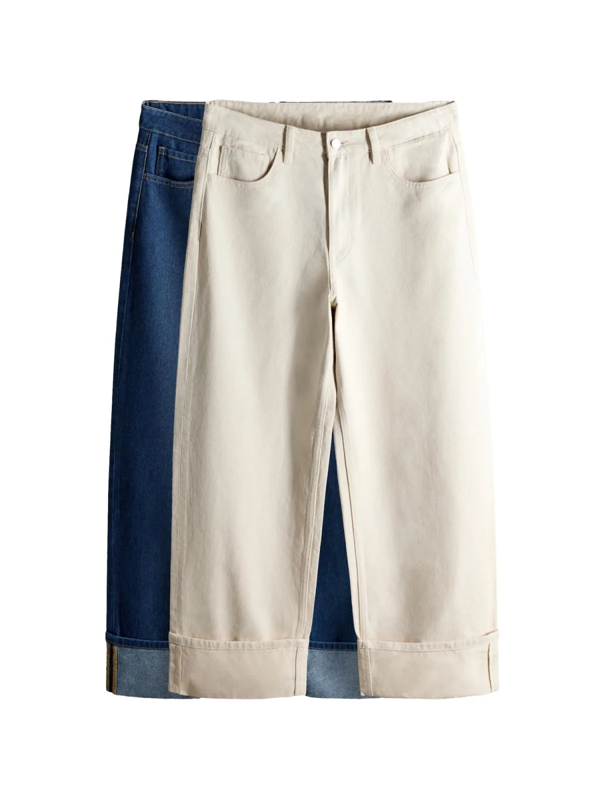 Design: Omgeslagen zoom; Type sluiting: Ritssluiting; Materiaal: Denim; Motief: Effen; Extra's: Vaste grip; Lengte: Lang/maxi; Aantal: 2 Pack; Pasvorm: Wide leg; Taillehoogte: Mid waist