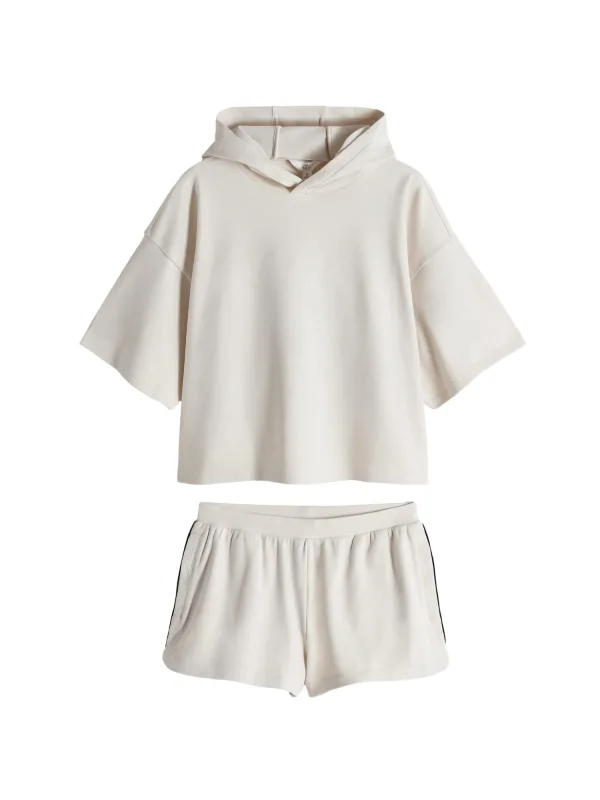Design: Elastische taille/zoom, Met capuchon; Materiaal: Sweatstof; Motief: Effen; Extra's: Op staal naden, Voelt zacht aan; Lengte: Kort/mini; Armlengte: Halve mouw