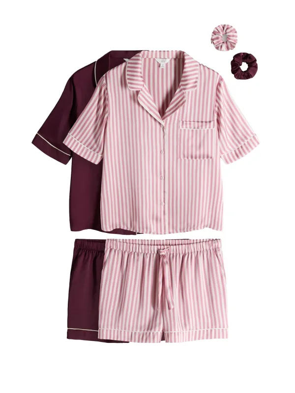 The Set Korte pyjama pink / bordeaux / wit Prijzen