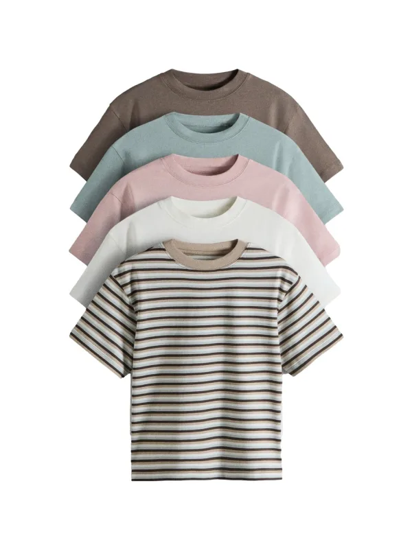 Design: Gevoerde zoom/rand, Oversized; Materiaal: Jersey; Halstype: Ronde hals; Extra's: All-over patroon; Pasvorm: Wijde pasvorm; Aantal: 5 Pack; Armlengte: Halve mouw