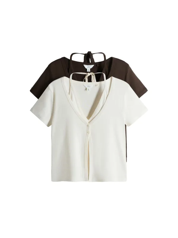 Design: Gelaagde look, Om te knopen/binden; Type sluiting: Knoopsluiting; Materiaal: Jersey; Halstype: V-hals; Motief: Effen; Extra's: Voelt zacht aan; Pasvorm: Normale pasvorm; Aantal: 2 Pack; Armlengte: Kwartmouw; Lengte: Normale lengte
