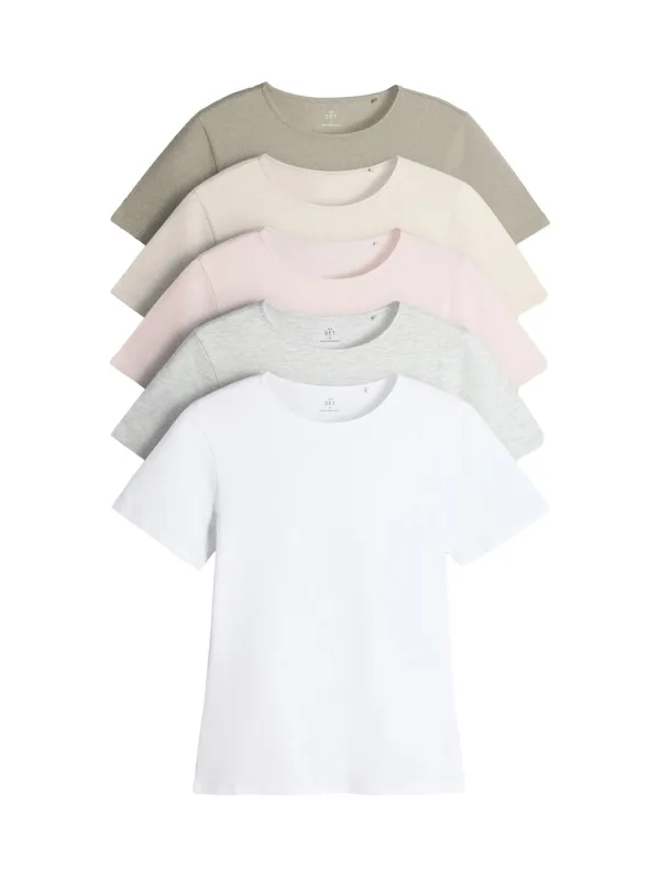 Design: Gevoerde zoom/rand; Materiaal: Jersey; Halstype: Ronde hals; Motief: Effen; Pasvorm: Aansluitende pasvorm; Aantal: 5 Pack; Armlengte: Kwartmouw; Lengte: Normale lengte