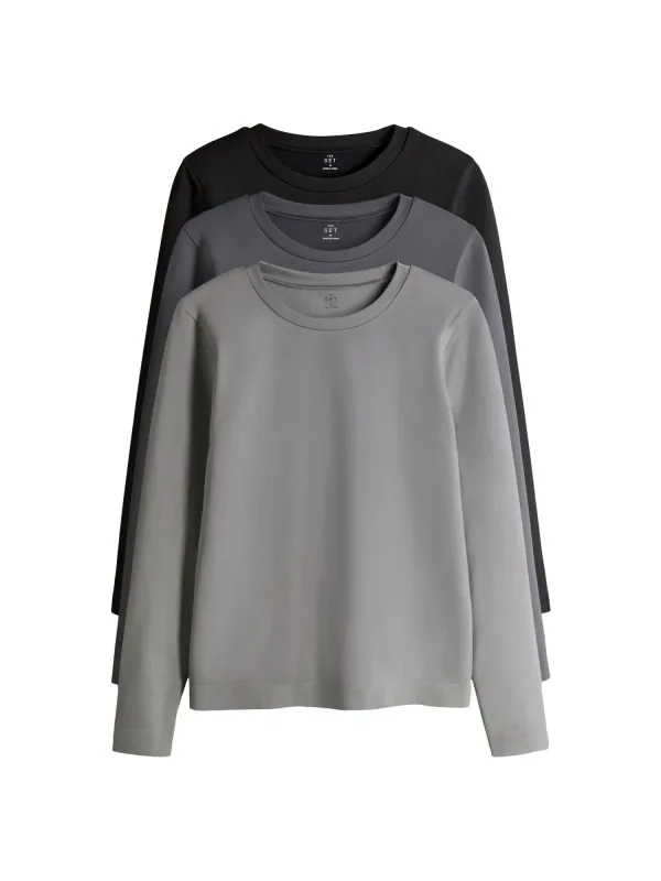 Design: Gevoerde zoom/rand, Rechte zoom; Halstype: Ronde hals; Extra's: Op staal naden, Voelt zacht aan; Pasvorm: Normale pasvorm; Aantal: 3 Pack; Armlengte: Lange mouw; Lengte: Normale lengte