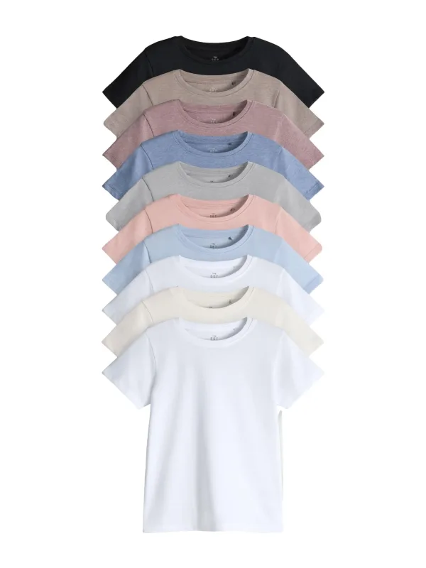 Design: Gevoerde zoom/rand; Materiaal: Jersey; Halstype: Ronde hals; Motief: Effen; Extra's: Voelt zacht aan; Pasvorm: Normale pasvorm; Aantal: 10 Pack; Armlengte: Kwartmouw