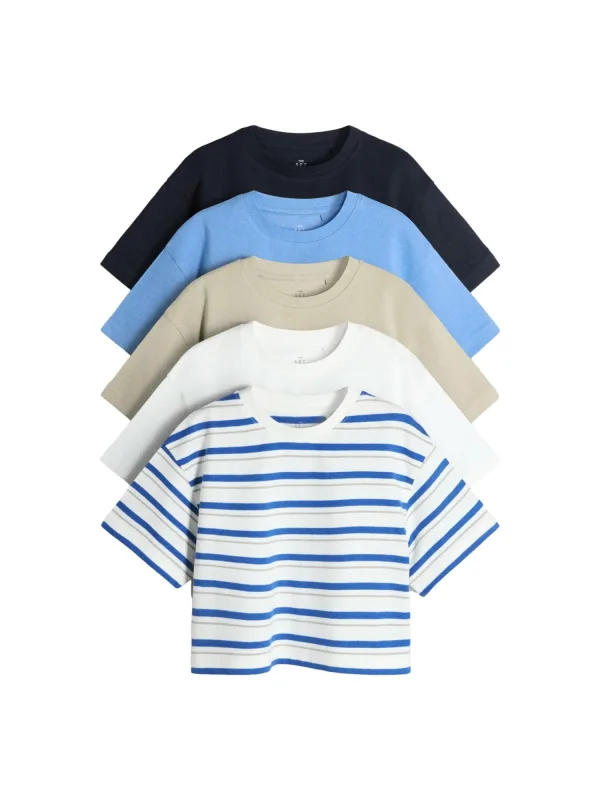 Design: Overcut schouder; Materiaal: Jersey; Halstype: Ronde hals; Extra's: Voelt zacht aan; Pasvorm: Losse pasvorm; Aantal: 5 Pack; Armlengte: Halve mouw