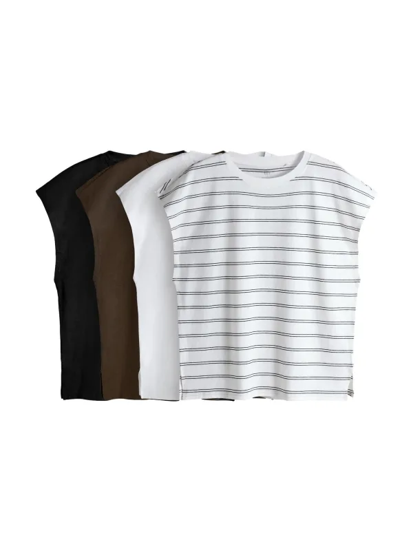 Design: Geribbelde kraag; Materiaal: Jersey; Halstype: Ronde hals; Motief: Effen; Extra's: Op staal naden; Pasvorm: Normale pasvorm; Aantal: 4 Pack; Armlengte: Mouwloos; Lengte: Normale lengte