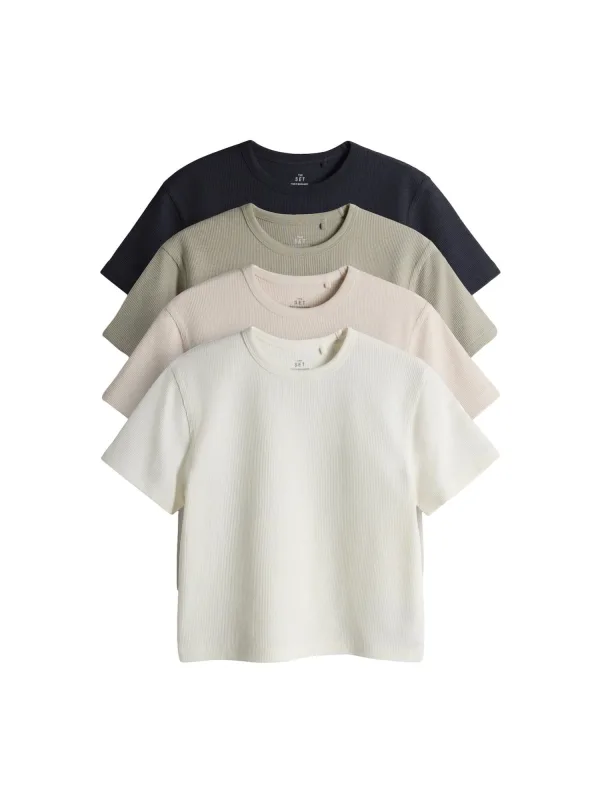 Design: Gevoerde zoom/rand, Geribbelde kraag; Type sluiting: Slip; Materiaal: Jersey; Halstype: Ronde hals; Motief: Effen; Extra's: Op staal naden, Wafelstructuur; Pasvorm: Normale pasvorm; Aantal: 4 Pack; Armlengte: Kwartmouw