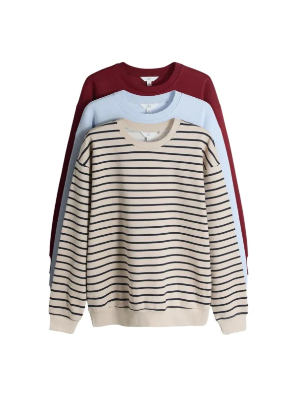 Design: Rechte zoom; Materiaal: Sweatstof; Halstype: Ronde hals; Motief: Gestreept; Extra's: Voelt zacht aan; Pasvorm: Normale pasvorm; Aantal: 3 Pack; Armlengte: Lange mouw; Lengte: Normale lengte