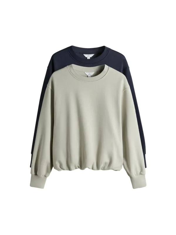 Design: Geribbelde kraag, Elastische taille/zoom; Materiaal: Sweatstof; Halstype: Ronde hals; Motief: Effen; Details: Gedrapeerd; Extra's: Op staal naden, Voelt zacht aan; Pasvorm: Normale pasvorm; Aantal: 2 Pack; Armlengte: Lange mouw; Lengte: Normale lengte