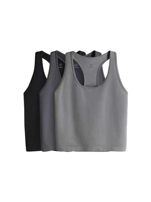 Design: Gevoerde zoom/rand, Rechte zoom; Materiaal: Jersey; Halstype: Ronde hals; Motief: Effen; Soort bandjes: Racerback; Extra's: Op staal naden, Buigzame grip; Pasvorm: Slanke pasvorm; Aantal: 3 Pack; Armlengte: Mouwloos; Lengte: Korte pasvorm