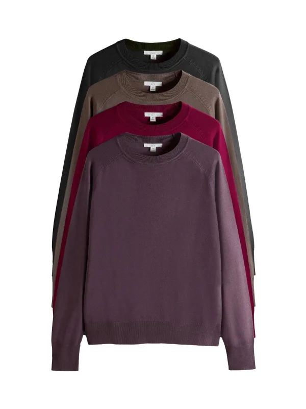 Design: Geribbelde kraag, Raglanmouwen, Geribd ceintuurtje; Materiaal: Knitwear; Halstype: Ronde hals; Motief: Effen; Extra's: Fully fashioned, Voelt zacht aan; Pasvorm: Normale pasvorm; Aantal: 4 Pack; Armlengte: Lange mouw; Lengte: Normale lengte