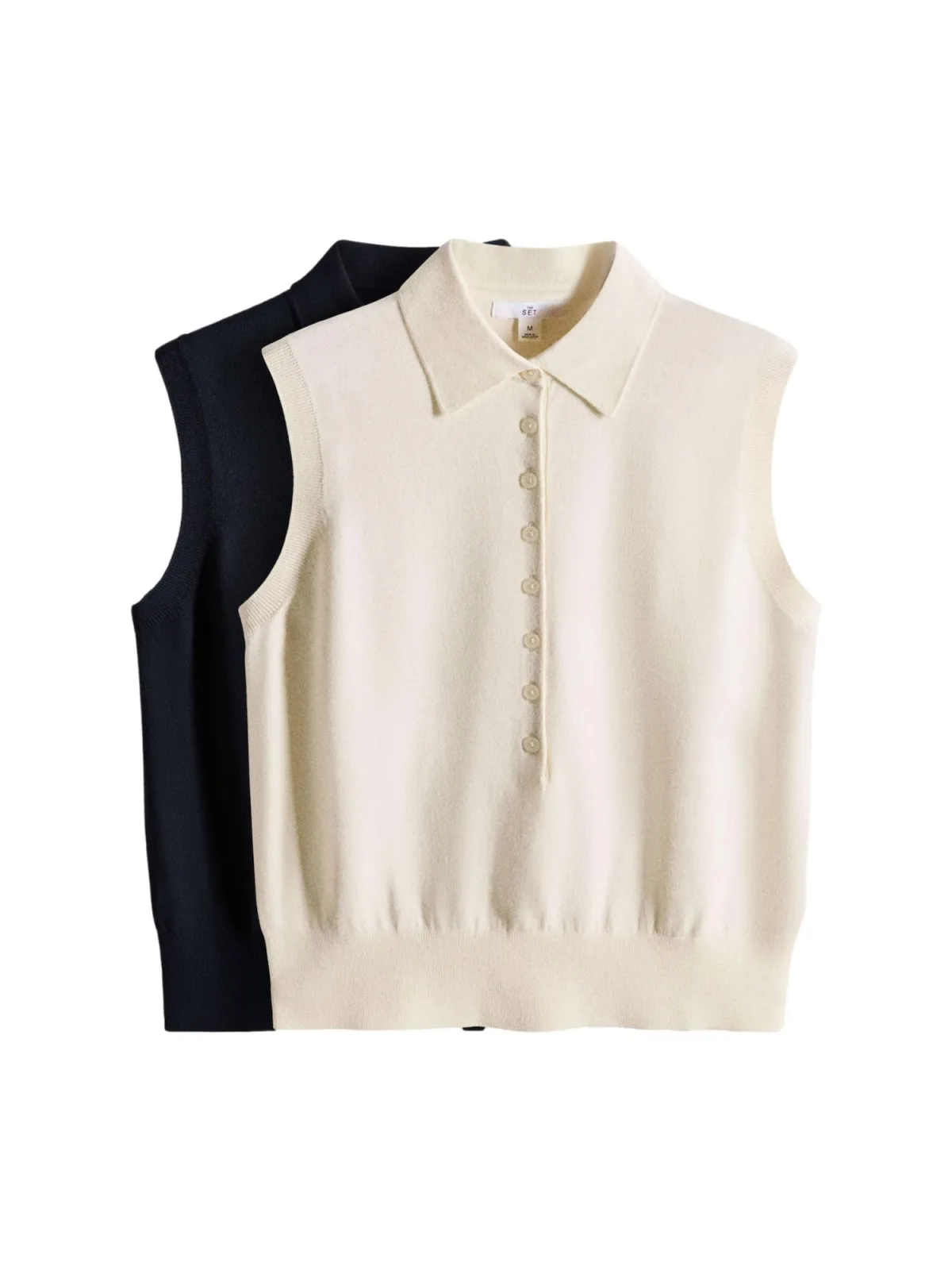 Design: Geribbelde kraag, Geribd ceintuurtje; Type sluiting: Knoopsluiting; Materiaal: Knitwear; Halstype: Polokraag; Motief: Effen; Extra's: Fully fashioned, Met textuur; Pasvorm: Normale pasvorm; Aantal: 2 Pack; Armlengte: Mouwloos; Lengte: Normale lengte