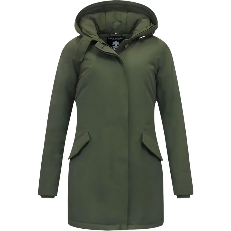 Winterjas Dames Getailleerd - 280 - Groen - Productinformatie: Winterjas Dames Getailleerd Groen Heeft een prachtige khaki kleur Gemakkelijk te combineren Comfortabel en warm model, perfect voor de winter Lang model met een getailleerd pasvorm Het materiaal bestaat uit polyester De voering bestaat uit 75% polyester 25% katoen Heeft een rits met knopen als sluiting Het model heeft 2 jaszakken en geen binnenzakken De capuchon is niet afritsbaar Voorgedrukte knopen / rits aan capuchon.Zelf uit te breiden met bontkraag (wordt niet meegeleverd) Breng hem naar de stomerij voor een maximale levensduur Kan ook gewassen worden op 30 graden Verkrijgbaar in de maten XS – S – M – L – XL