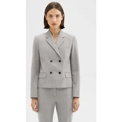 Theory Double-breasted Blazer In Good Wool Light Grey Melange