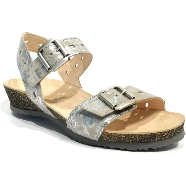 Sandaal van Think met uitstekend kurk met leer bekleed voetbed. Met klittenband sluiting.