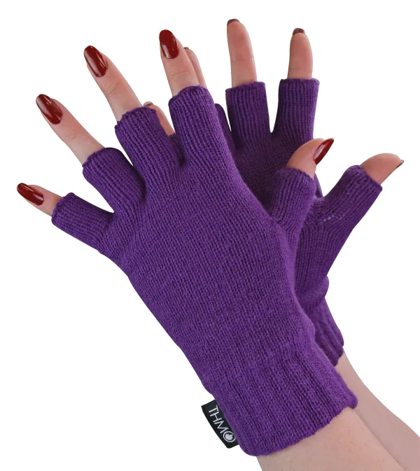 THMO dames fleece gevoerde thermo vingerloze handschoenen – Paars