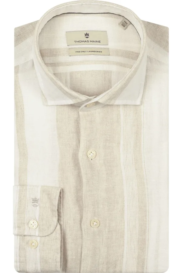 Thomas Maine Linnen Overhemd beige, Gestreept Prijzen