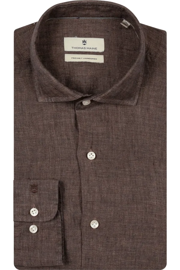 Thomas Maine Linnen Overhemd bruin, Effen Prijzen