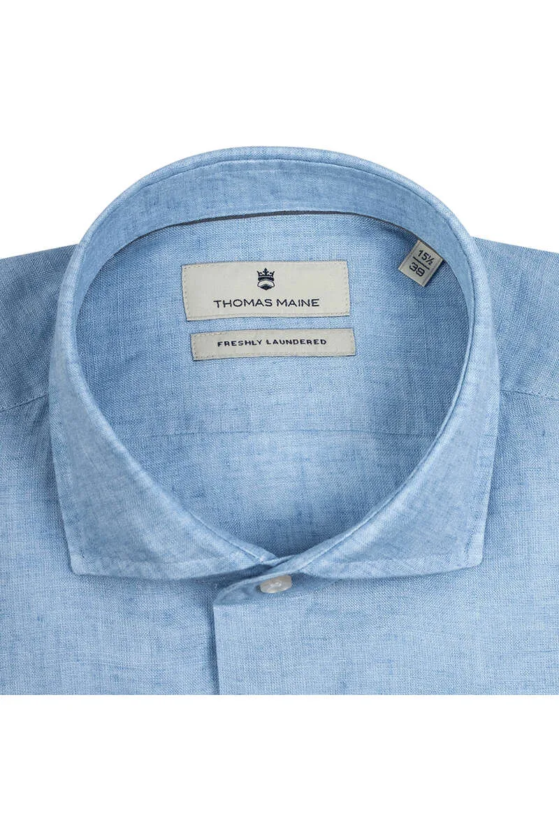 Thomas Maine Linnen Overhemd lichtblauw, Effen