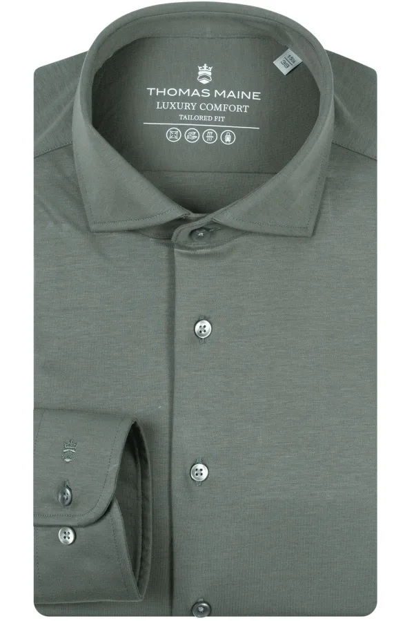 - Bij Overhemden.com kun je Thomas Maine Luxury Jersey shirt groen, Effen kopen voor slechts €99,95