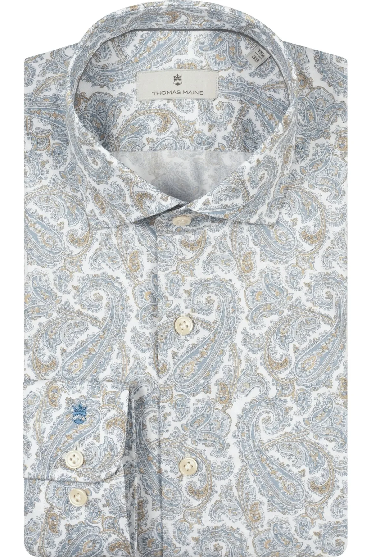 Thomas Maine Overhemd blauw/bruin, Paisley Prijzen