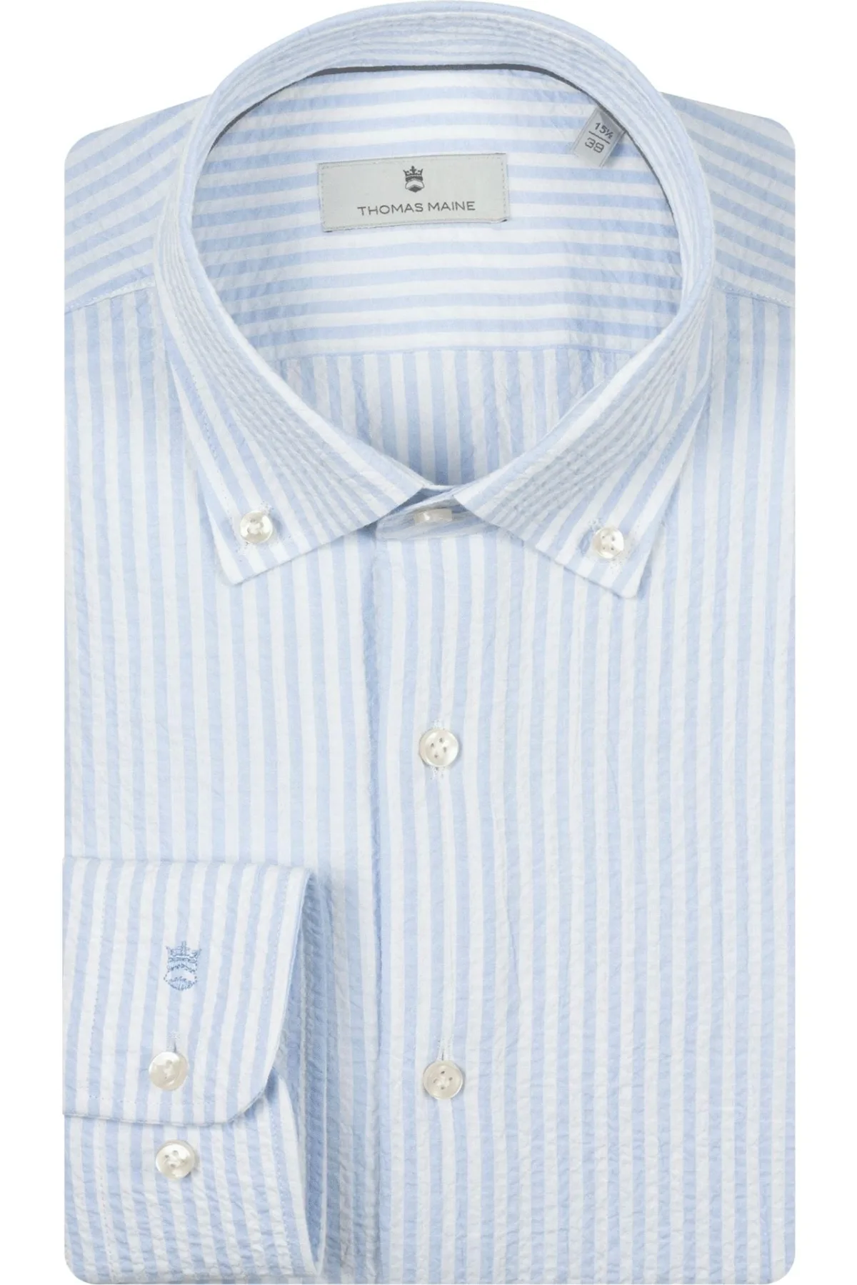 Thomas Maine Overhemd lichtblauw, Gestreept