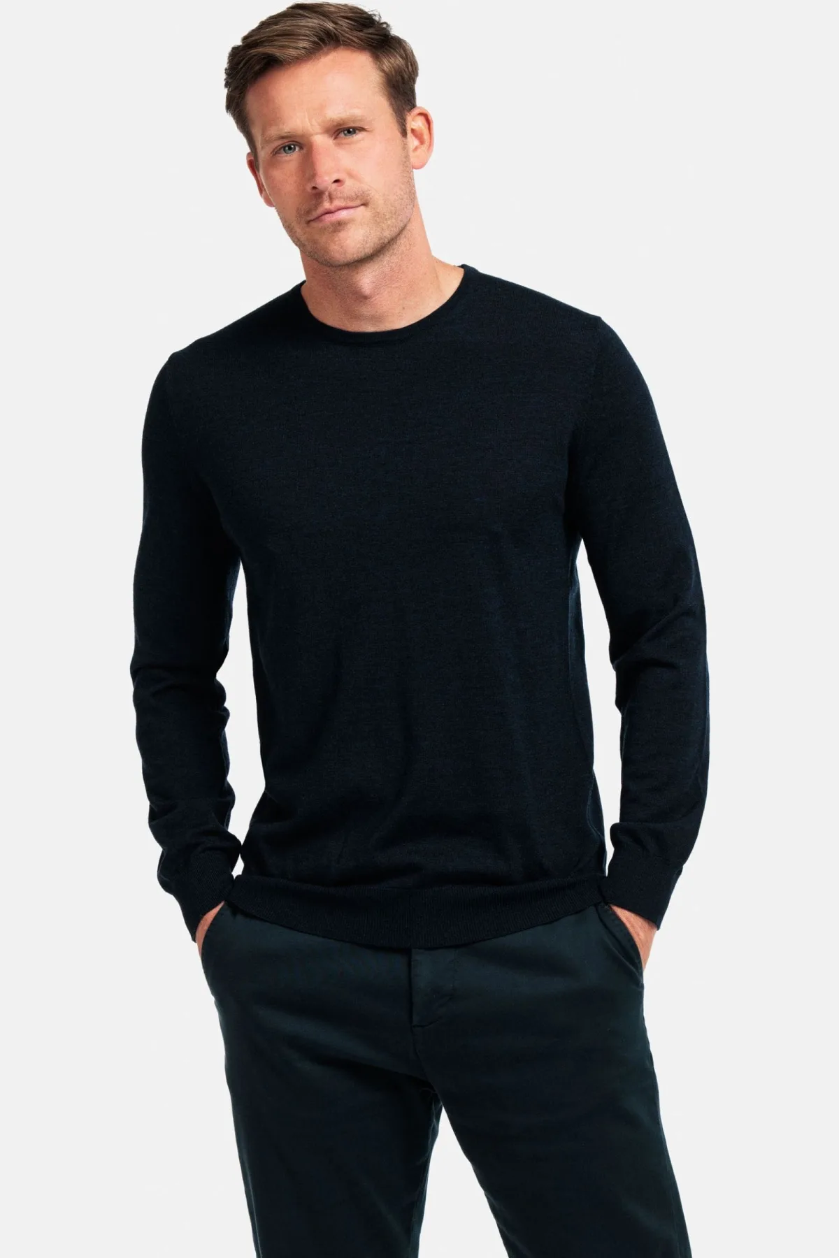 Thomas Maine Trui ronde halsdonkerblauw, Effen
