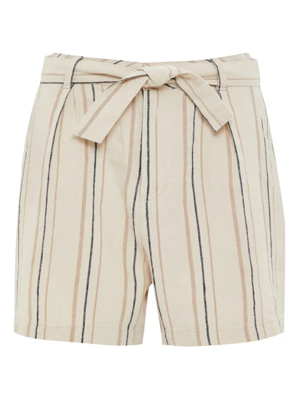 Design: Met riem, Zakken aan de zijkant; Type sluiting: Knoopsluiting; Materiaal: Linnen; Motief: Gestreept; Details: Plooien; Extra's: Op staal naden, Riemlussen; Lengte: Kort/mini; Pasvorm: Regular; Taillehoogte: High waist