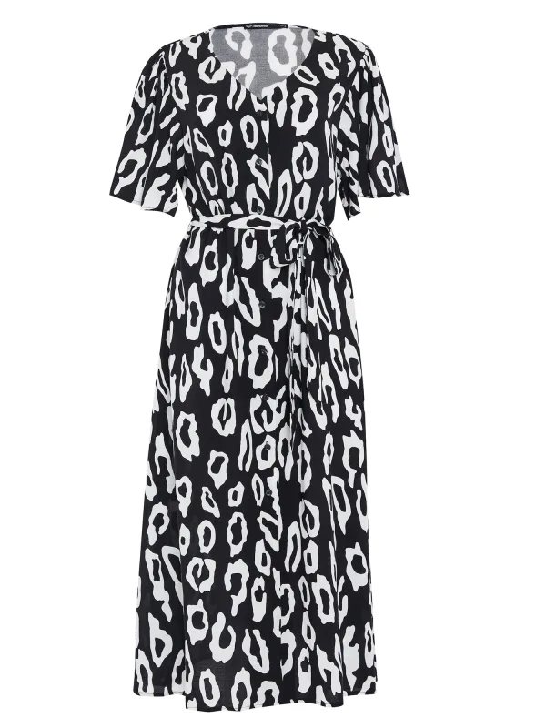 Design: Gevoerde zoom/rand, Taille met trekkoord; Type sluiting: Knoopsluiting; Materiaal: Viscose; Halstype: V-hals; Motief: Dierenprint; Kraag: Zonder kraag; Details: Gedrapeerd; Extra's: All-over patroon, Voelt zacht aan; Lengte: 7/8 lengte; Pasvorm: Normale pasvorm; Armlengte: Halve mouw