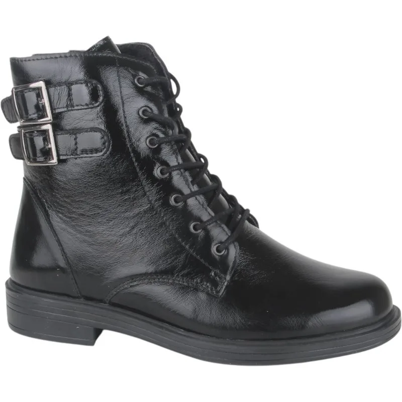 Ti Comos 2510005-001 veterboots gekleed dames in de kleur zwart materiaal lak maat 36 binnenvoering Textiel materiaal zool Rubber