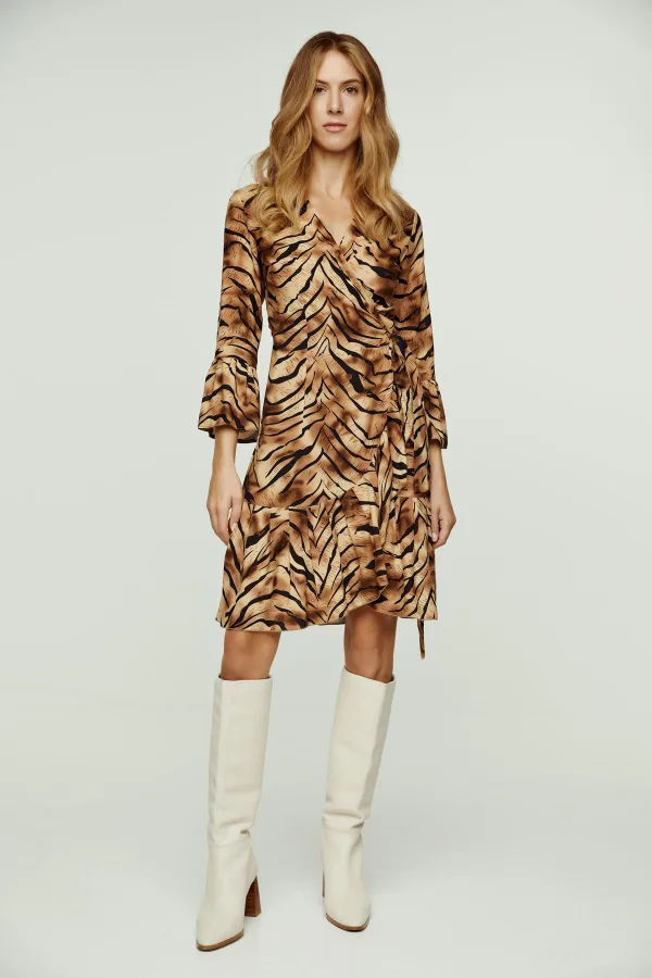 - Bij to-be-dressed.nl kun je Tijgerprint viscose wikkeljurk met klokmouwen kopen voor slechts €65,45