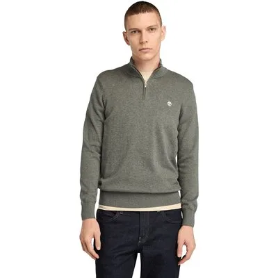 Timberland Williams River Cotton 1/4 Zip Sweater Dark Grey Heather