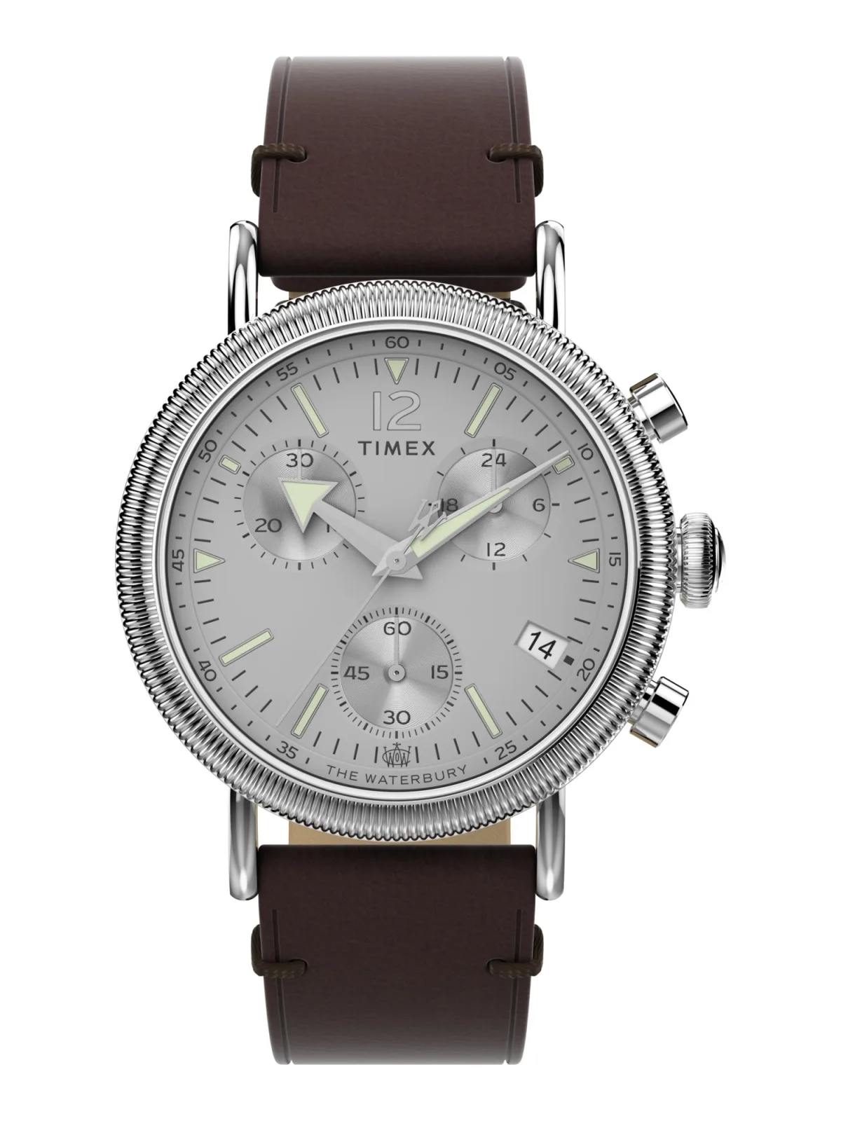 TIMEX Analoog horloge ‘Waterbury’ donkerbruin / zilver