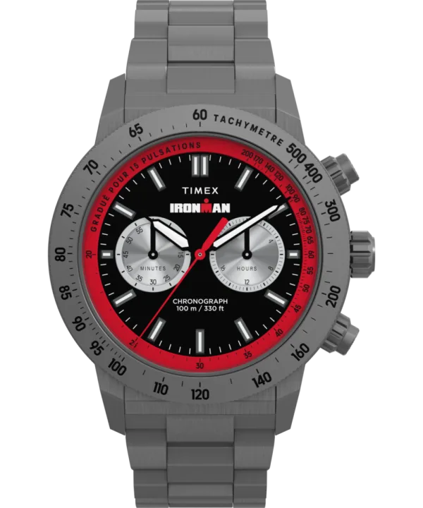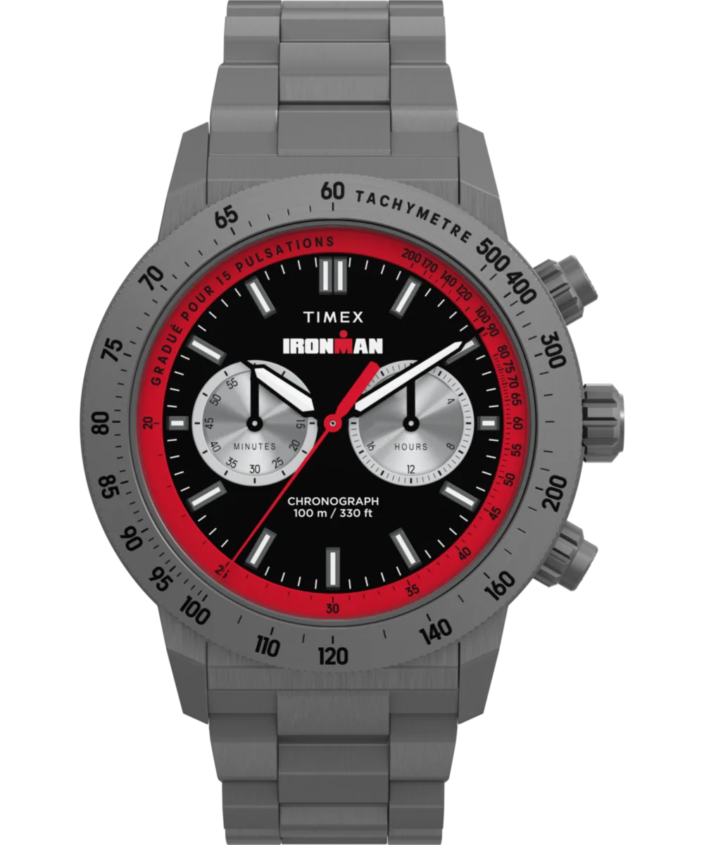 Dit Timex Ironman Premium Adrenaline Chronograph Horloge voor Mannen is het perfecte sieraad om te dragen of cadeau te geven. De Gun 44 mm ronde kast in combinatie met de comfortabele Gun roestvrijstalen horlogeband zorgt ervoor dat je volop van dit verbluffende uurwerk kunt genieten zonder enige compromissen. Aangedreven door een hoogwaardig Kwarts uurwerk en waterdicht tot 10 bar, blijft je horloge tikken. We brengen een analoge weergave naar onze hoogpresterende TIMEX® IRONMAN® met levendige rode details en een schoon wijzerplaatontwerp. Dit chronograaf horloge heeft een functie: Stopwatch, 24-uurs Display, Lichtgevende Wijzers en Tachymeter. Hoogwaardige 21 cm lengte en 22 mm breedte van een Gun roestvrijstalen band met een Vouwsluiting. Kastdiameter: 44 mm, kastdikte: 11,5 mm, kastkleur: Gun en wijzerplaatkleur: Zwart.