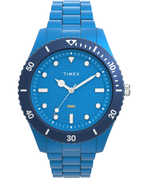Deze Timex Legacy Analoge Horloge voor Mannen is het perfecte uurwerk om te dragen of om cadeau te geven. De blauwe ronde kast van 42 mm, gecombineerd met de comfortabele blauwe plastic horlogeband, zorgt ervoor dat je van dit schitterende uurwerk kunt genieten zonder compromissen. Aangedreven door een hoogwaardige quartzbeweging en waterbestendig tot 3 bar, blijft je horloge werkend. We introduceren nieuwe veelzijdige kleurstellingen in onze Timex Legacy #tide-collectie. Dit analoge horloge heeft een functie: Luminous Wijzers en Luminous Cijfers. Hoogwaardige band met een lengte van 21 cm en een breedte van 19 mm, een blauwe plastic band met een klapsluiting met drukknoop. Kastdiameter: 42 mm, kastdikte: 13 mm, kastkleur: blauw en wijzerplaatkleur: blauw.