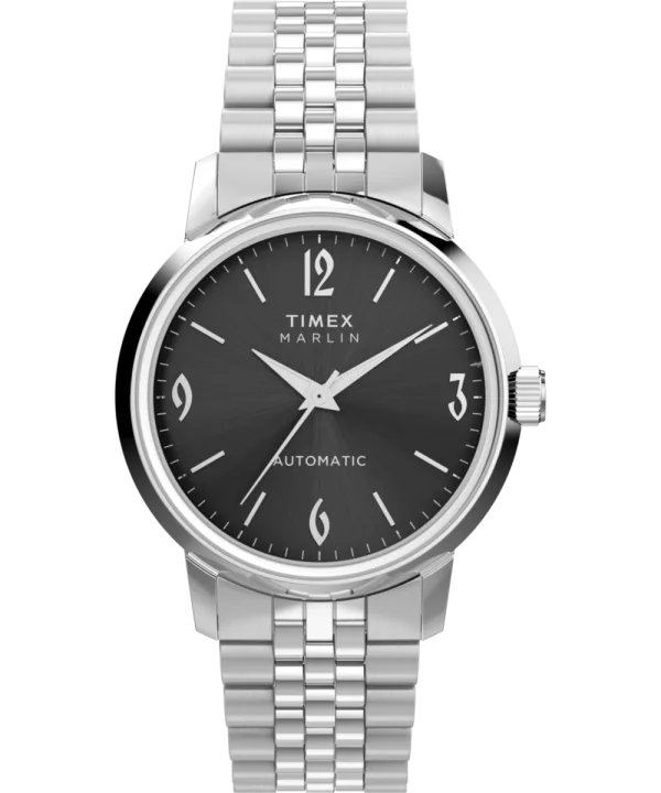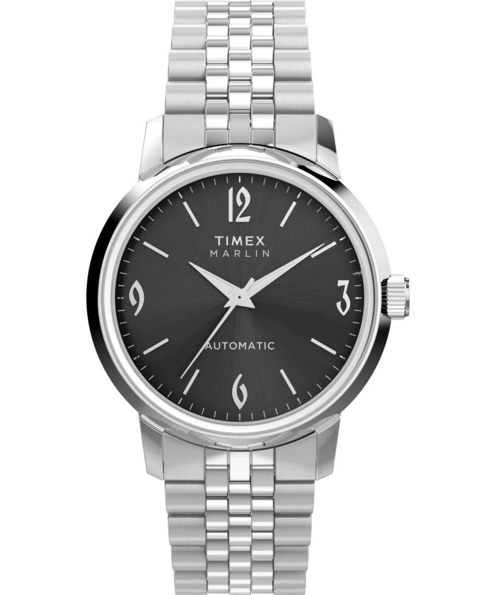Dit Timex Marlin analoge horloge voor heren is het perfecte tijdstuk om te dragen of cadeau te doen. De zilveren 40 mm ronde kast in combinatie met de comfortabele zilveren roestvrijstalen horlogeband zorgt ervoor dat je volop kunt genieten van dit prachtige horloge zonder compromissen. Aangedreven door een hoogwaardige automatische beweging en waterbestendig tot 5 bar, blijft je horloge tikken. Deze frisse update van onze Marlin Automatisch beschikt over het iconische dial- en handontwerp van een van onze best verkochte Marlin-horloges uit de jaren '60. Dit analoge horloge heeft een functie: Luminous Hands. Hoogwaardige 21 cm lengte en 19 mm breedte met een zilveren roestvrijstalen band met een vouwsluiting met drukknop. Kastdiameter: 40 mm, kastdikte: 13 mm, kastkleur: zilver en wijzerplaatkleur: zwart.