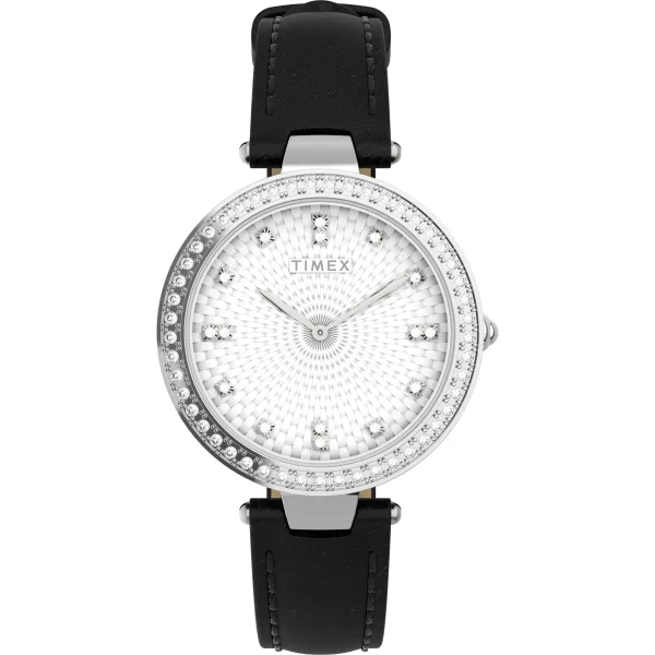Dit Timex Dames horloge beschikt over een Quartz binnenwerk. De kast (32 mm mm) is vervaardigd uit Staal (Wit) en heeft een Mineraalglas. De band is Zwart Leer. Dit horloge uit de Timex Trend reeks is een mooi en tijdloos geschenk. Verras jezelf of iemand anders met dit cadeau. Bovendien geniet u hierbij van 2 jaar garantie tegen alle fabricagefouten.