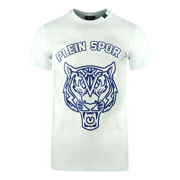 Philipp Plein Sport Stencil Tiger Logo Witte T-Shirt. Philipp Plein Sport Witte T-Shirt. Stretch Fit 95% Katoen, 5% Elastaan. Gemaakt in Italië. Plein Merken. Stijlcode: TIPS113 01