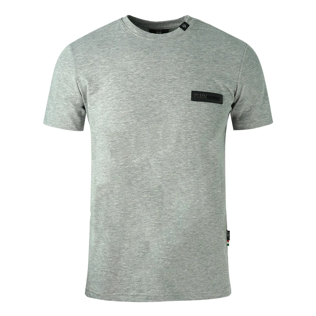Philipp Plein Sport Leren Patches Logo Grijze T-Shirt. Philipp Plein Sport Grijze T-Shirt. Stretch Fit 95% Katoen, 5% Elastaan. Gemaakt in Italië. Plein Merken Achtergrond. Stijlcode: TIPS121 94