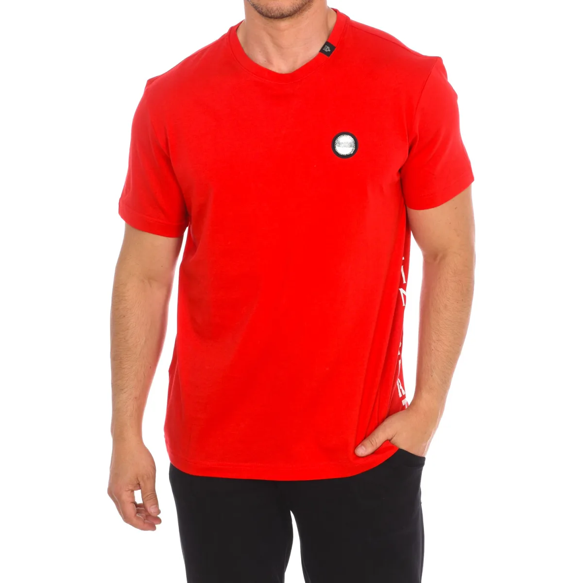 Plein Sport t-shirt met korte mouwen. Ronde halslijn met ribgebreide afwerking. Merksymbool aan de voorkant. Merklabel aan de achterkant. Stiknaden in dezelfde kleur. Samenstelling: 100% katoen Onderhoud: Wassen op maximaal 30º. Strijken op gemiddelde temperatuur. Niet in de droger. Niet bleken. Niet chemisch reinigen.