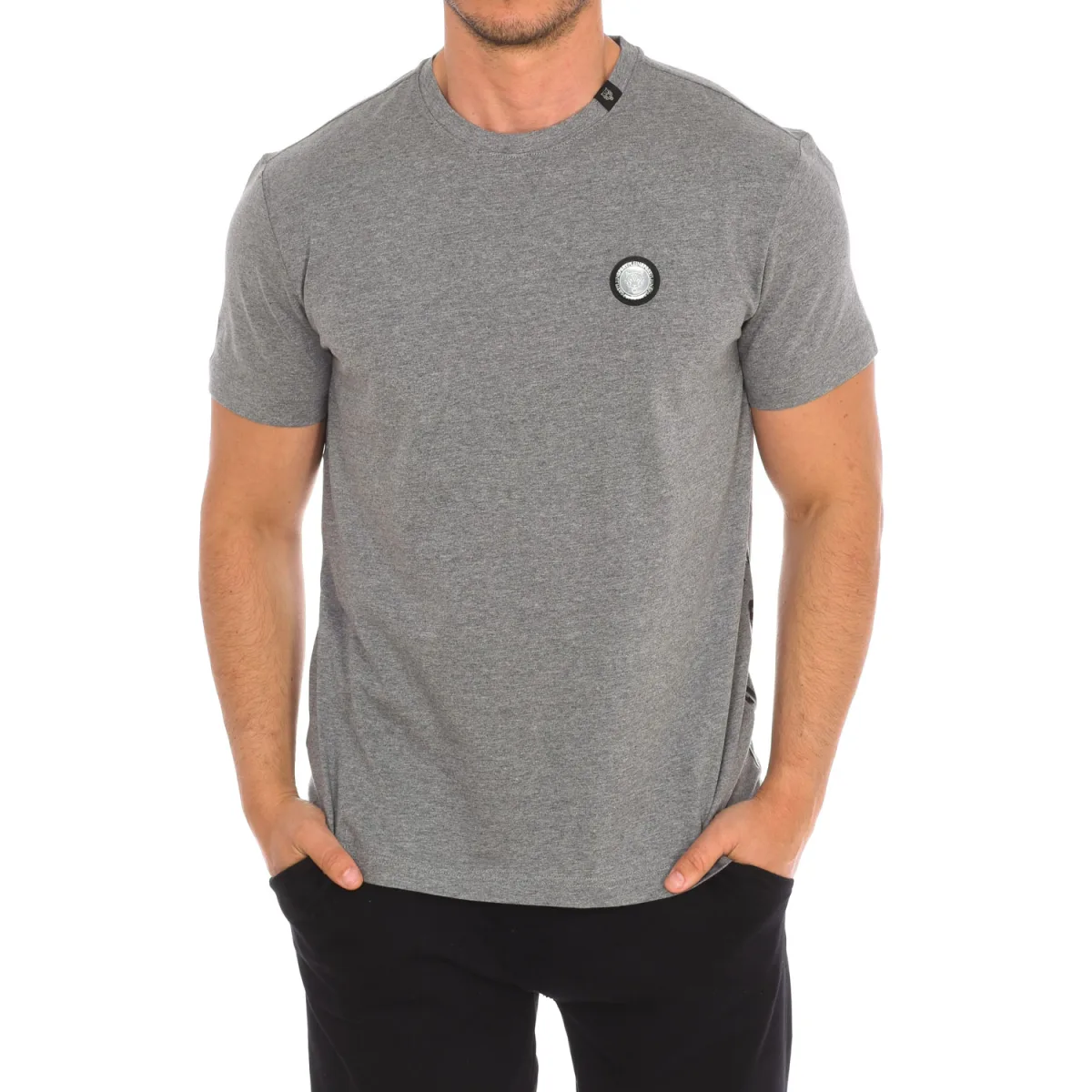 Plein Sport T-shirt met korte mouwen. Ronde hals met geribde afwerking. Merkembleem op de voorkant. Merkbadge op de achterkant. Naden in toon zichtbaar. Samenstelling: 100% katoen Onderhoud: Wassen op maximum temperatuur 30º. Strijken op middelhoge temperatuur. Geen droger gebruiken. Geen bleekmiddel gebruiken. Niet chemisch reinigen.