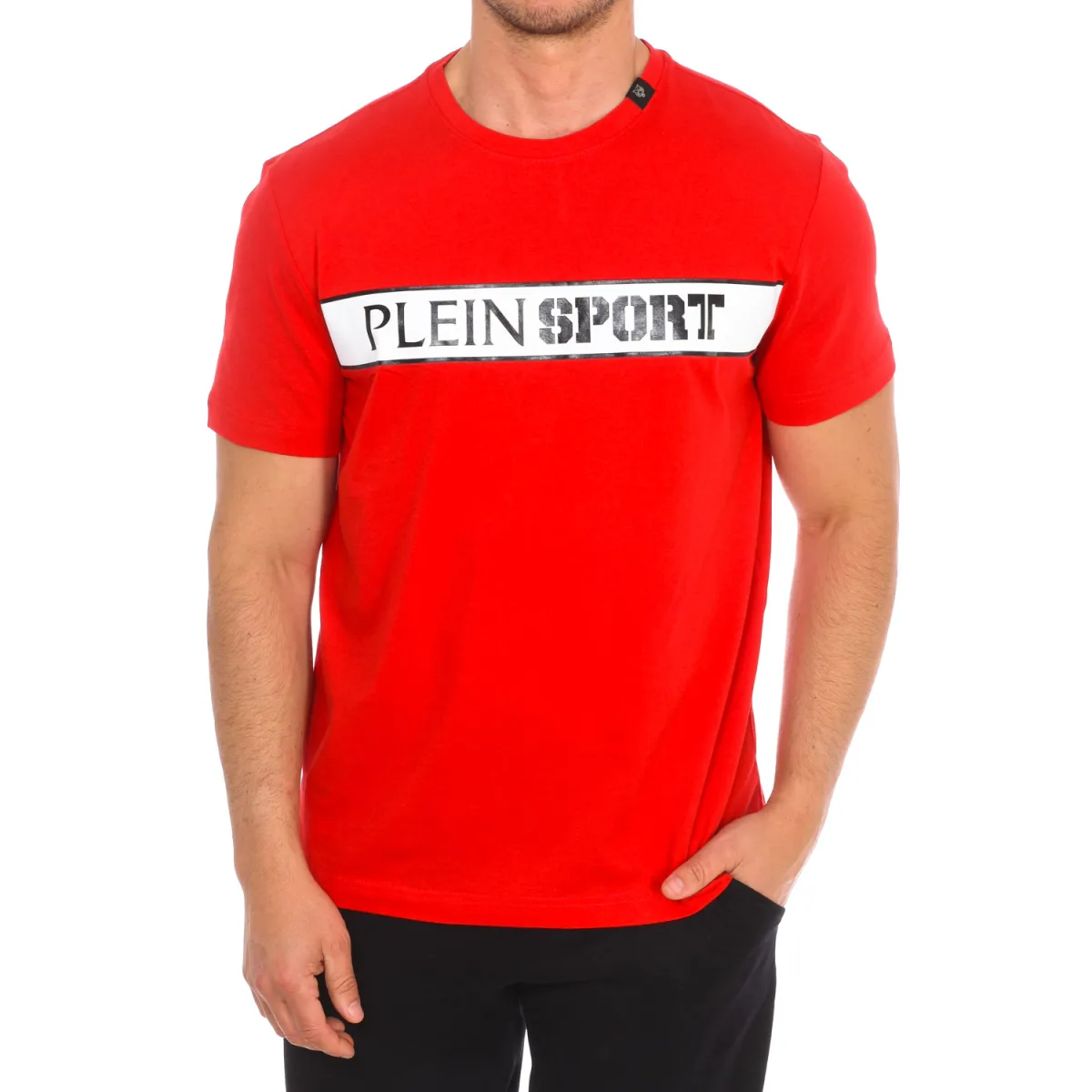 Plein Sport T-shirt met korte mouwen. Ronde hals met geribde afwerking. Merkopdruk op de voorkant. Merkembleem op de achterkant. Naden in toon zichtbaar. Samenstelling: 100% katoen Onderhoud: Wassen op maximum temperatuur 30º. Strijken op middelhoge temperatuur. Geen droger gebruiken. Geen bleekmiddel gebruiken. Niet chemisch reinigen.